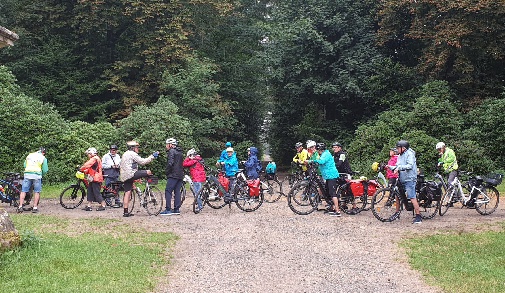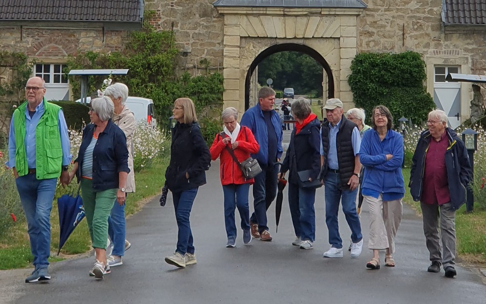 Dieses Mal ging es auf ruhigen und vielen unbekannten Wegen nach Schloss Lembeck. Wer mit dem Rad kam, konnte sich auf insgesamt 54 km Strecke freuen. Wer nicht mit dem Rad kommen konnte, kam mit dem Auto. Am Schloss Lembeck angekommen begrüßte eine professionelle Führerin die Gruppe. Bei einem Rundgang brachte sie den Sportlern engagiert und humorvoll die Geschichte des Schlosses und deren Besitzer über die Jahrhunderte nahe.